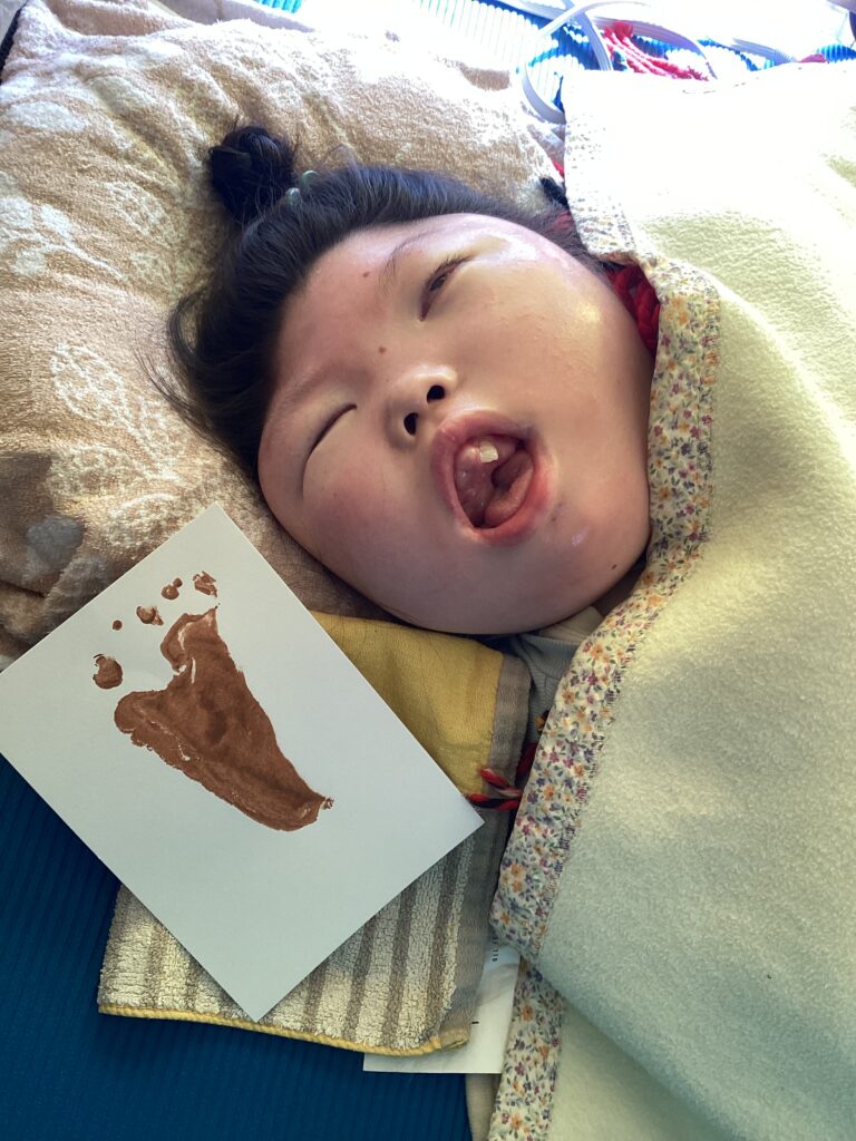足の裏に絵の具でこちょこちょ…